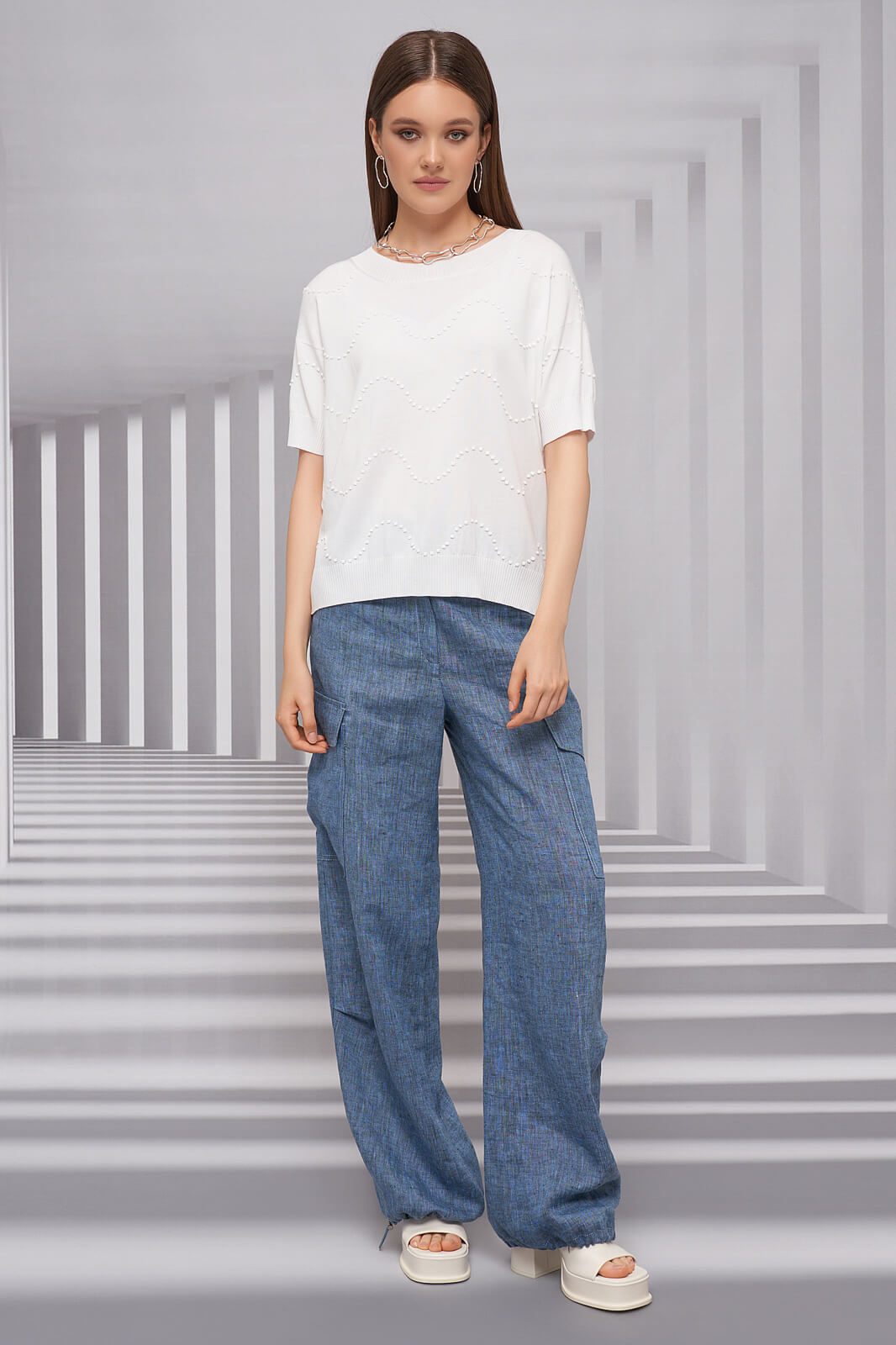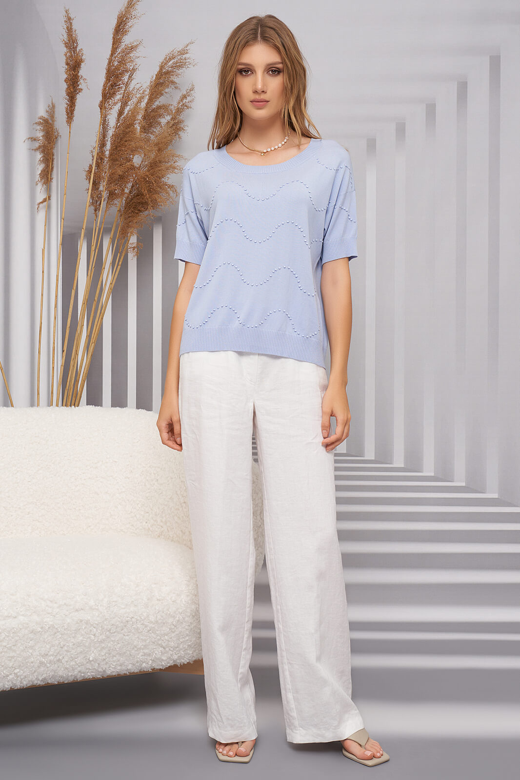 Джемпер женский, прямого, свободного силуэта. Горловина круглая. Рукав короткий, со спущенной линией плеча.