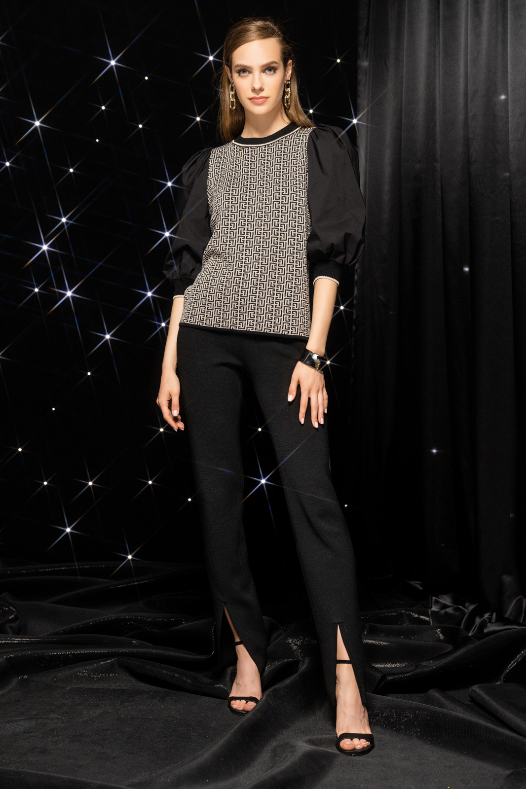 Джемпер женский, прямого, свободного силуэта. Рукав текстильный, объёмный на манжете. Горловина округлой формы.