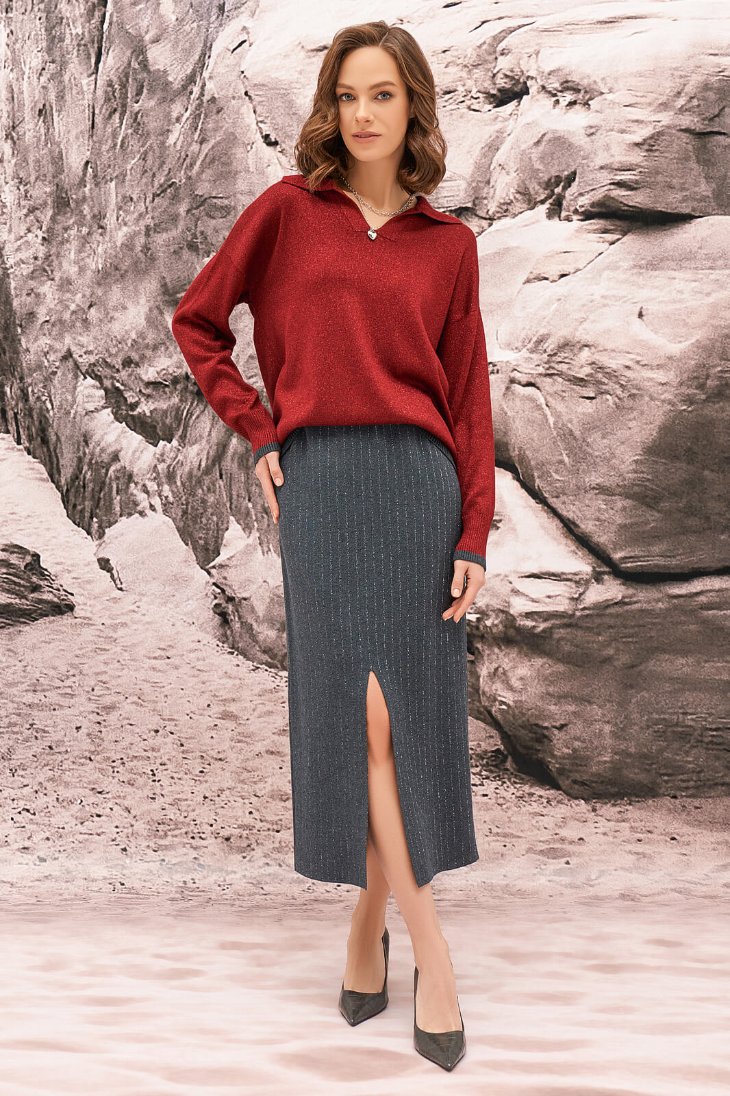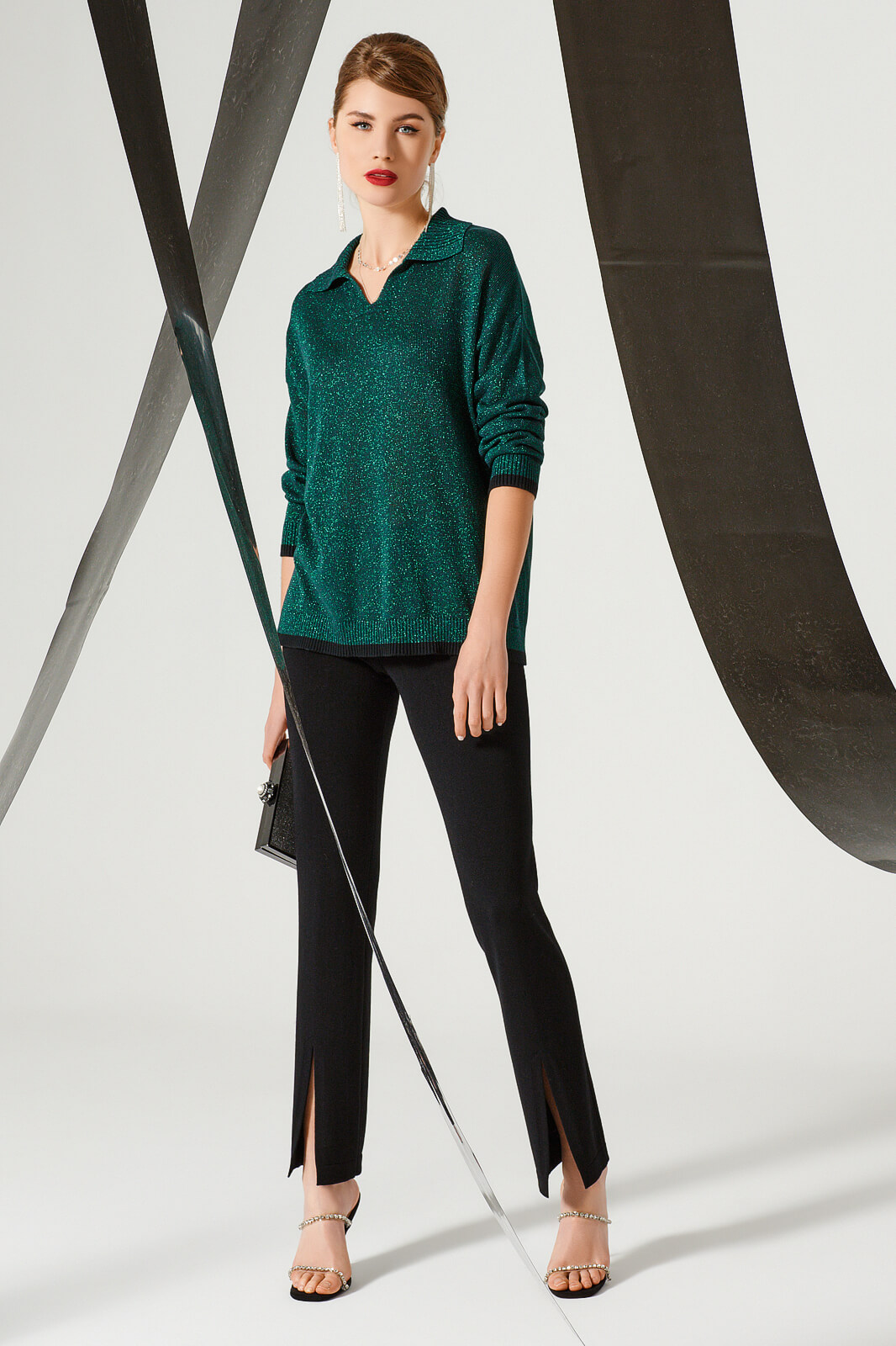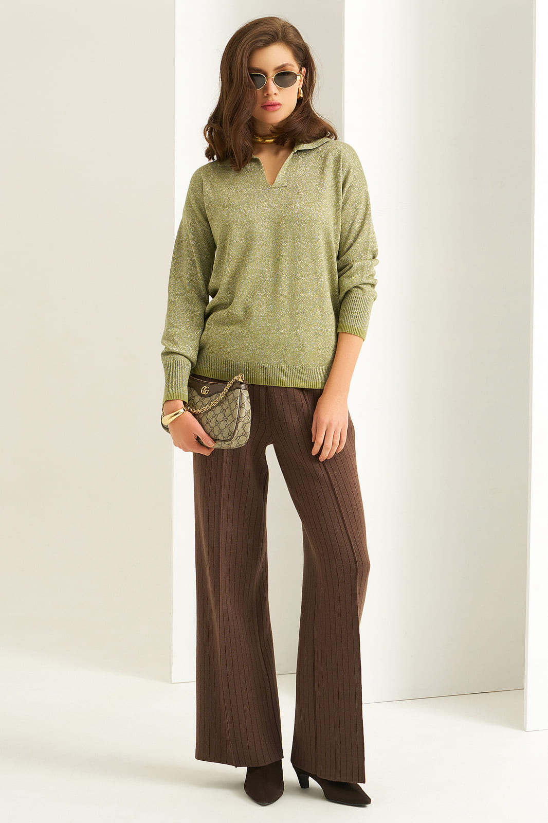 Джемпер женский, свобдного силуэта. Рукав длинный, со спущенной линией плеча. По вырезу горловины имеются планки с отложным воротником.