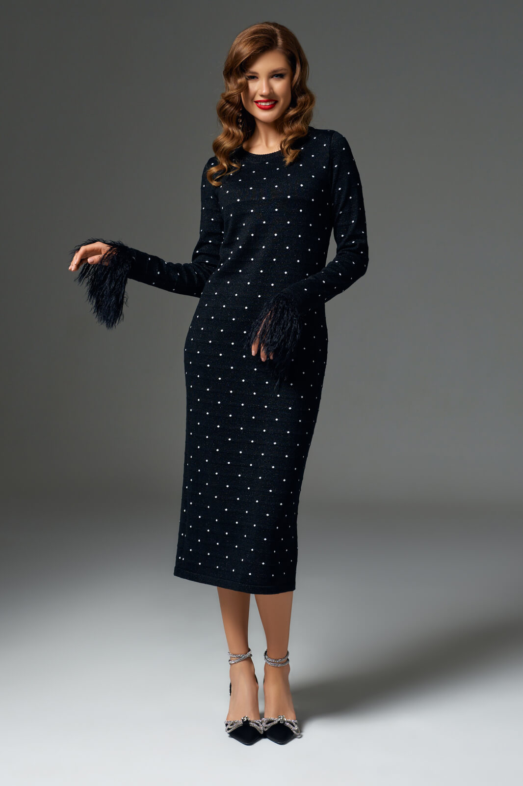 Платье женское, прямое, слегка заужено к низу. Рукав втачной, длинный. Горловина круглая.