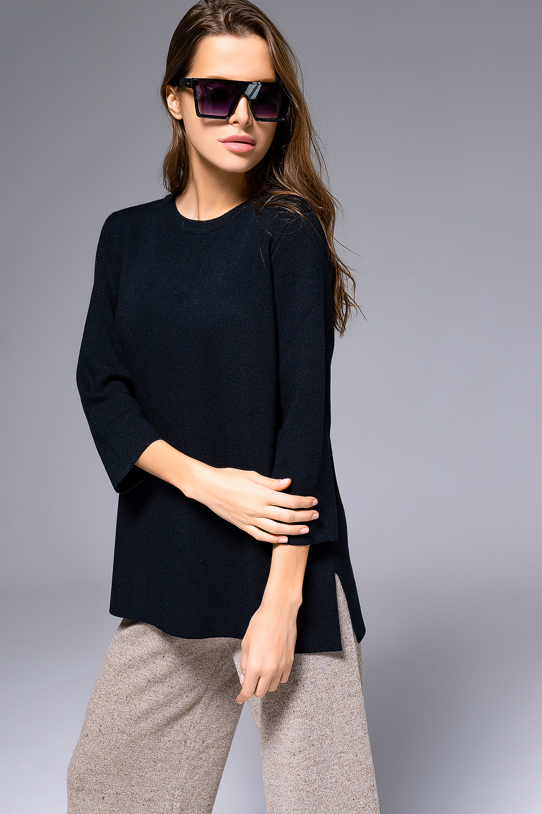 Туника женская полуприлегающего силуэта, в боковых швах — разрезы. Рукав втачной, длина 3/4.