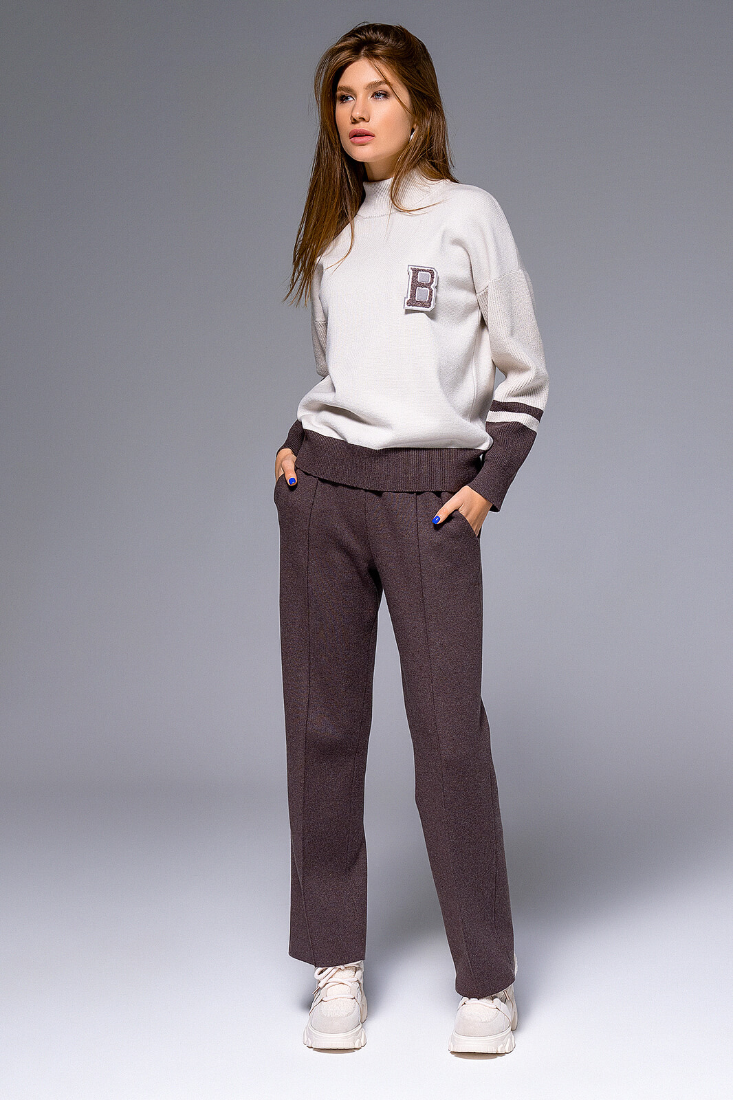 Джемпер женский,свободного силуэта. Рукав длинный, со спущенной линией плеча. Вырез горловины — круглый. На переде джемпера имеется сьёмная брошь В».