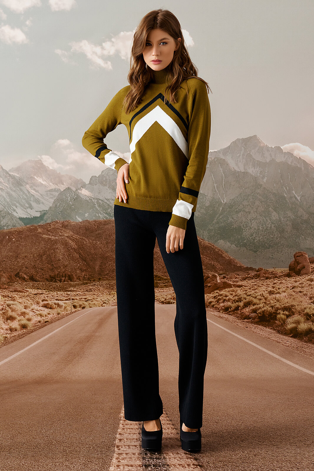 Джемпер женский, свободного силуэта. Рукав длинный, реглан. Воротник — стойка.