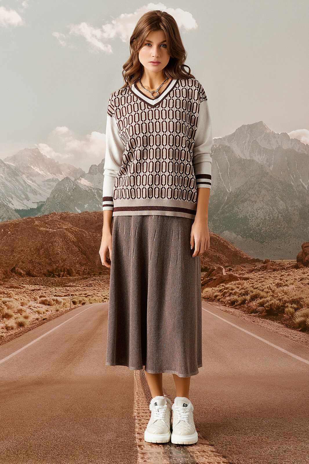Джемпер женский, свободного силуэта. Рукав длинный, со спущенной линией плеча. Горловина V- образной формы.