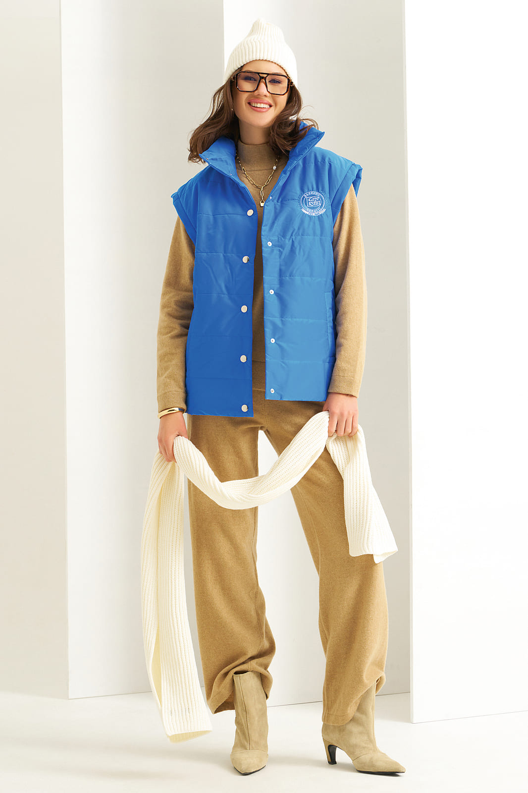 Горловина — стойка, жилетка застёгивается на 7 пробивных кнопок.
