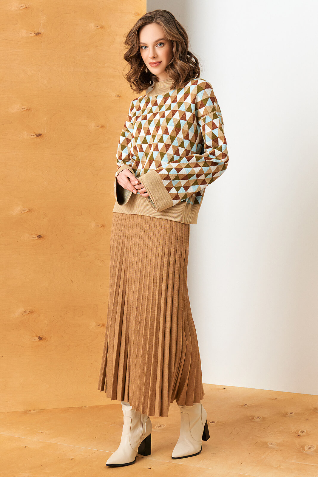 Джемпер женский, прямого,свободного силуэта. Горловина округлой формы. Рукав длинный, со спущенной линией плеча.