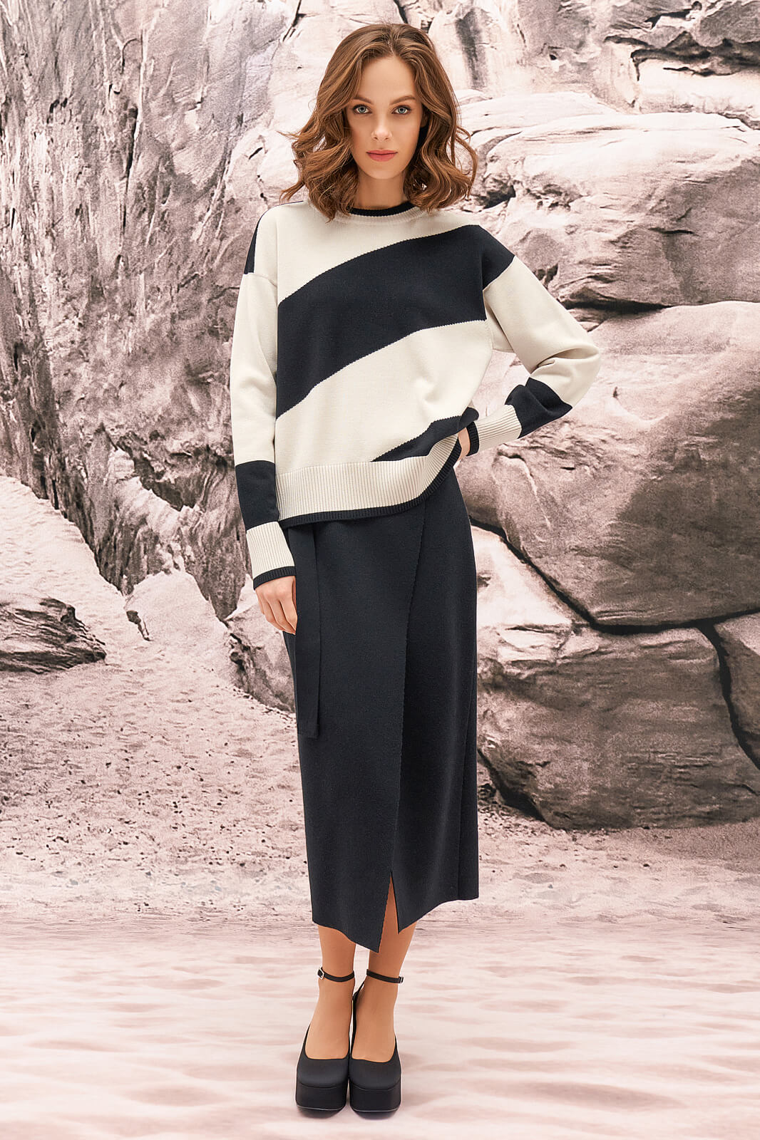Джемпер женский, прямого силуэта. Рукав длинный, со спущенной линией плеча. Горловина круглая.