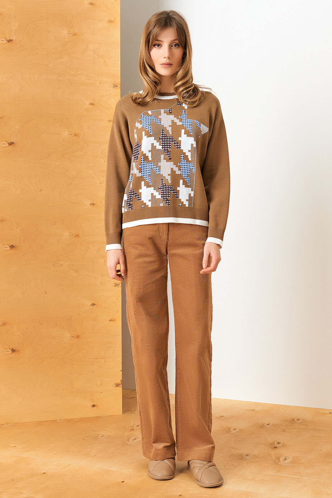 Джемпер женский, прямого силуэта. Горловина округлой формы. Рукав длинный, со спущенной линией плеча.