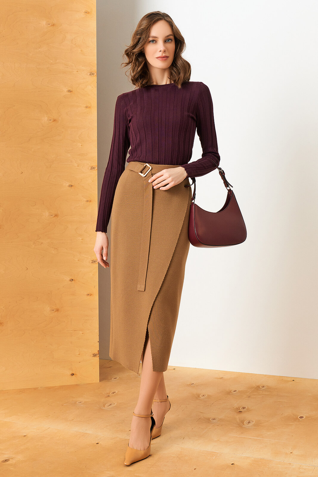 Джемпер женский, полуприлегающего силуэта. Рукав втачной, длинный. Вырез горловины круглый.