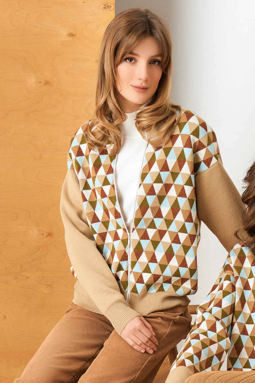 Жакет женский, прямого, свободного силуэта.. Рукав длинный, со спущенной линией плеча. Горловина круглая. Жакет застёгивается на молнию.