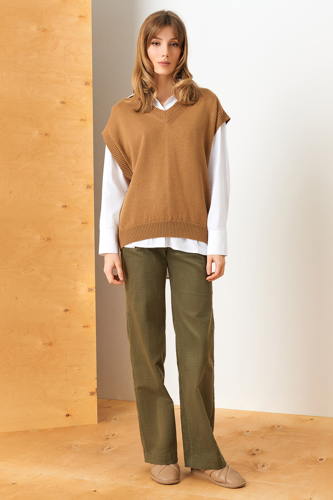 Жилет женский, свободного силуэта. V- образный вырез горловины.