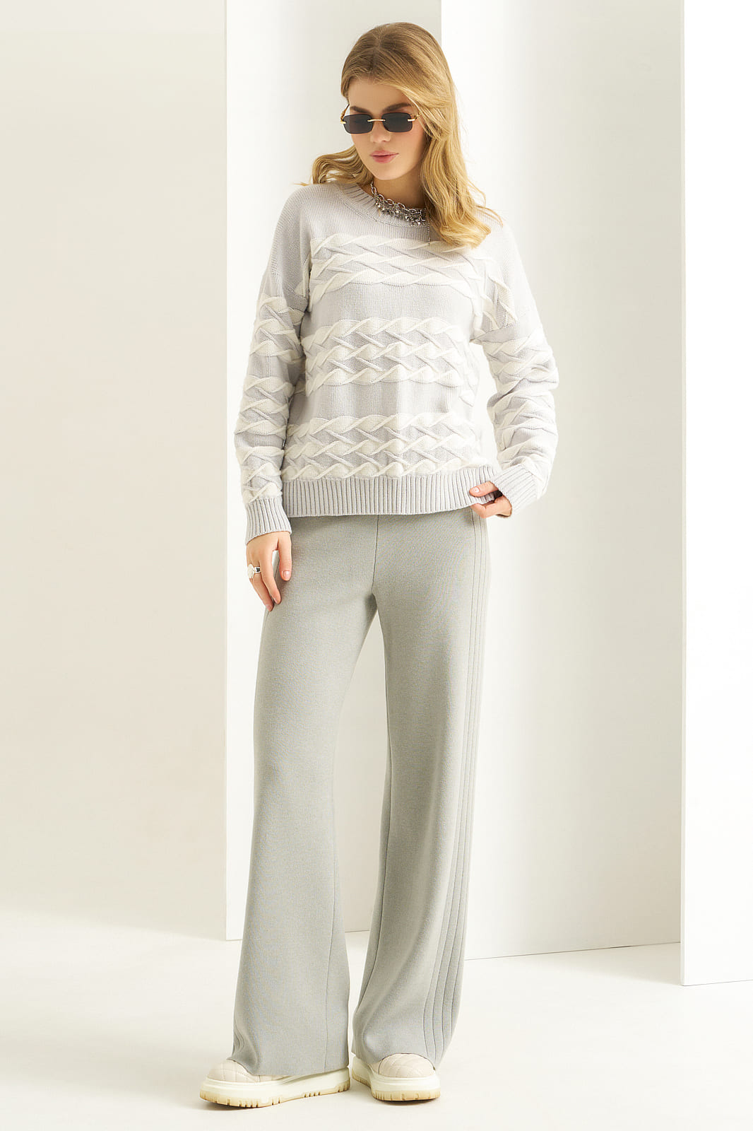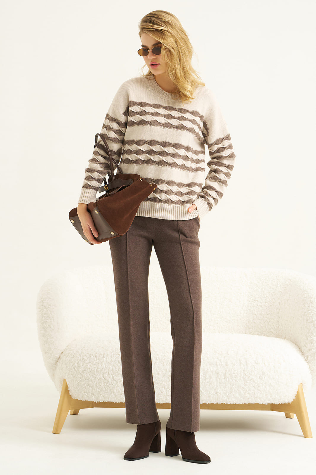 Джемпер женский, прямого силуэта. Рукав прямой, длинный, со спущенной линией плеча. . Горловина круглая.