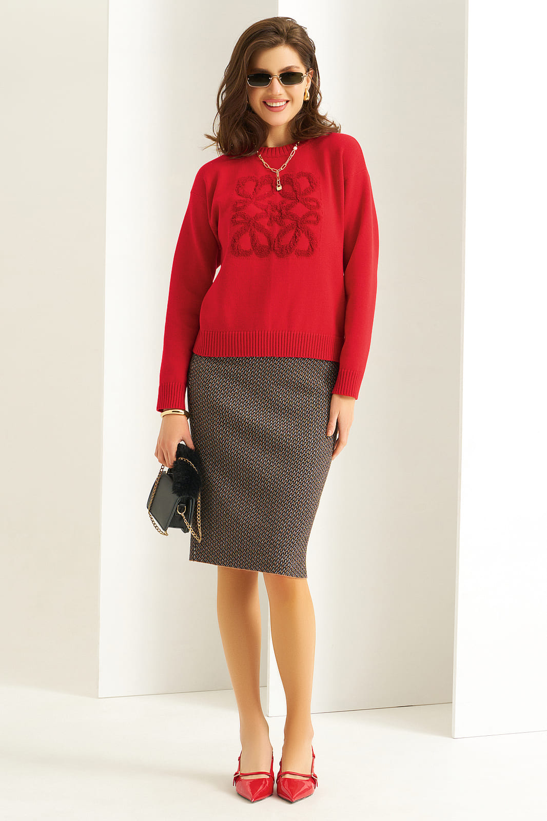 Джемпер женский, прямого, свободного силуэта. Рукав длинный, со спущенной линией плеча. Горловина округлой формы.